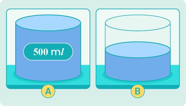 The diagram below shows two containers A and B that contain water. Container A contains \(500\text{ m}\boldsymbol\ell\) of water.