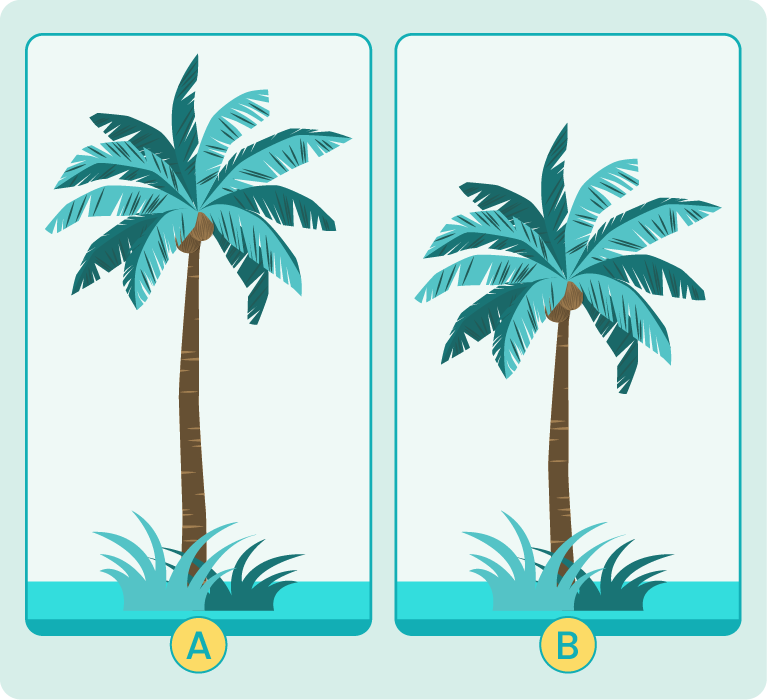 The picture shows two trees, \(A\) and \(B\) with different height.