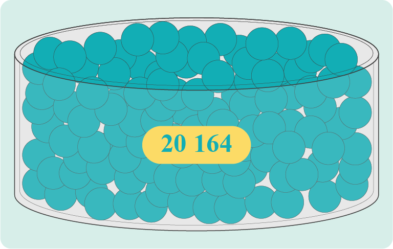 The diagram shows a ball pool filled with \(20\,164\) balls.